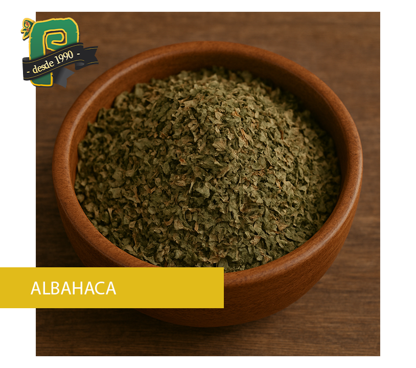 Albahaca seca de 50 g, aromática y fresca, ideal para sazonar pastas, ensaladas, salsas y todo tipo de preparaciones culinarias.