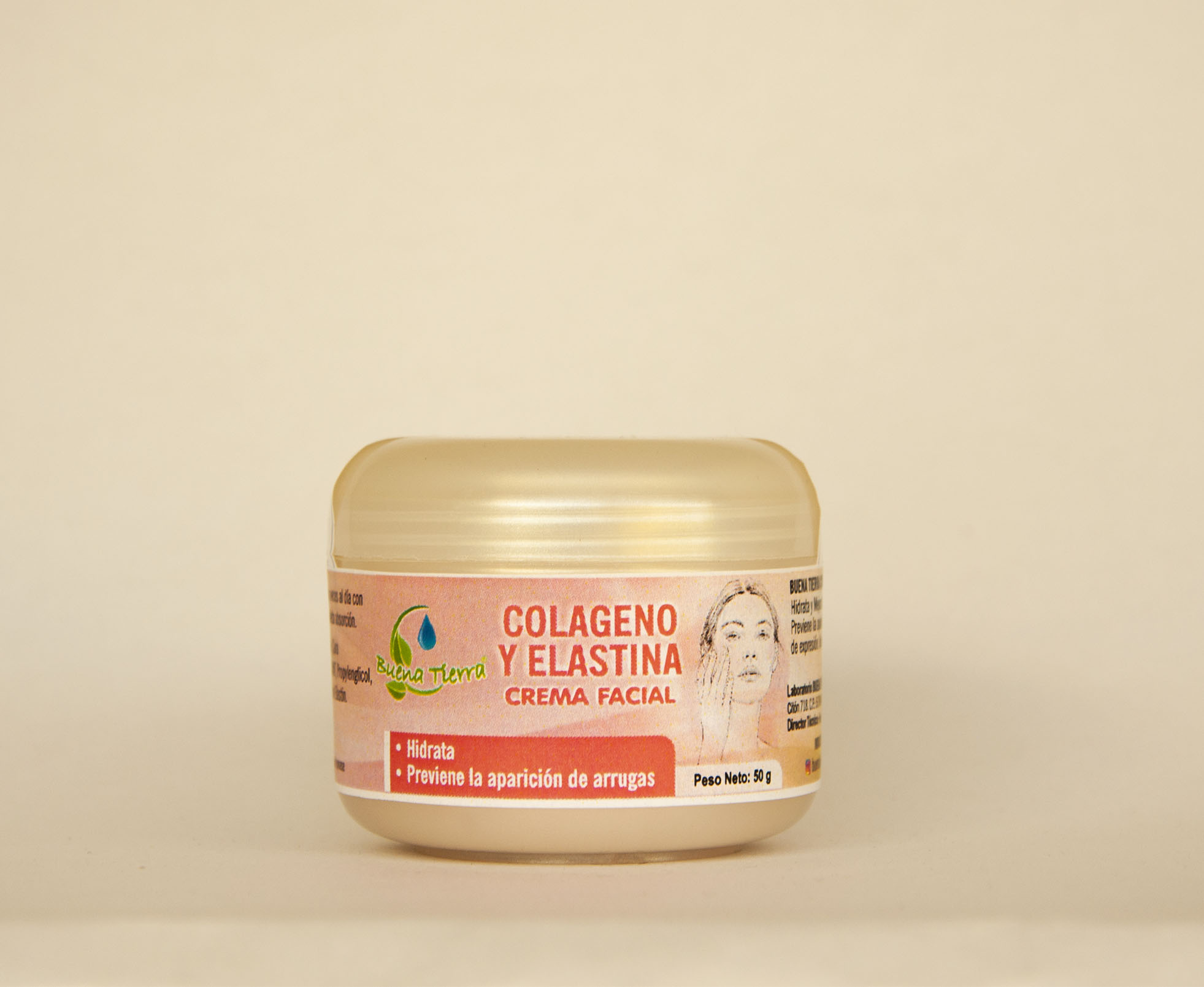 Crema con colágeno y elastina 50g Buena Tierra, mejora firmeza y elasticidad de la piel. Ideal para rutina de belleza diaria.
