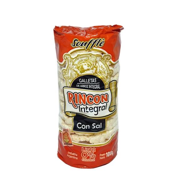 Disco de arroz con sal 100g, Rincón Integral, snack crujiente, bajo en grasas y natural. Ideal para meriendas saludables.