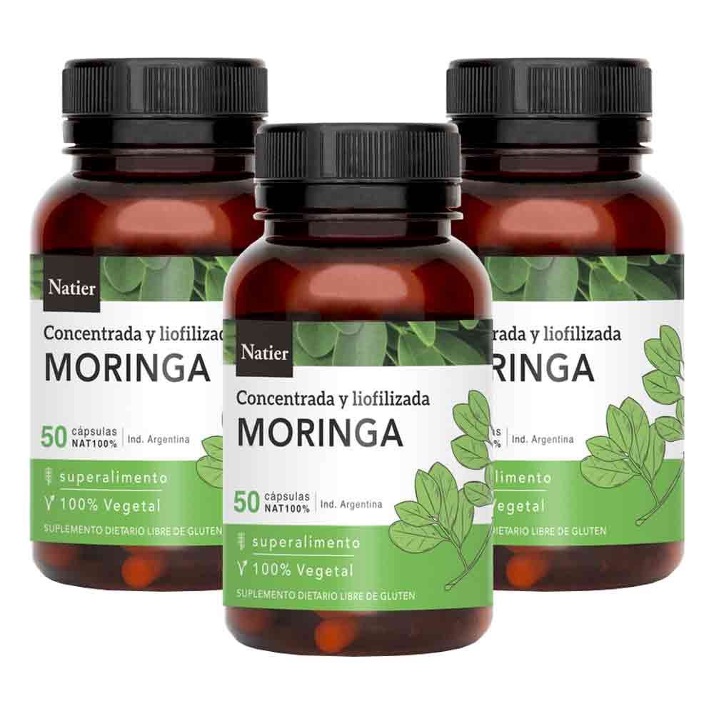 MORINGA CONCENTRADA NATIER 50 cápsulas, suplemento natural rico en vitaminas, minerales y antioxidantes, ideal para bienestar diario.