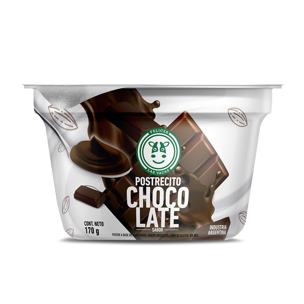 POSTRECITO CHOCOLATE FELICES LAS VACAS 125 gr, dulce vegano y saludable para disfrutar sin culpa.