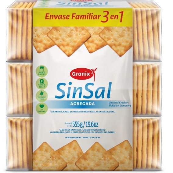 Galletas sin sal comun agregada elaboradas con salvado y harina de trigo.