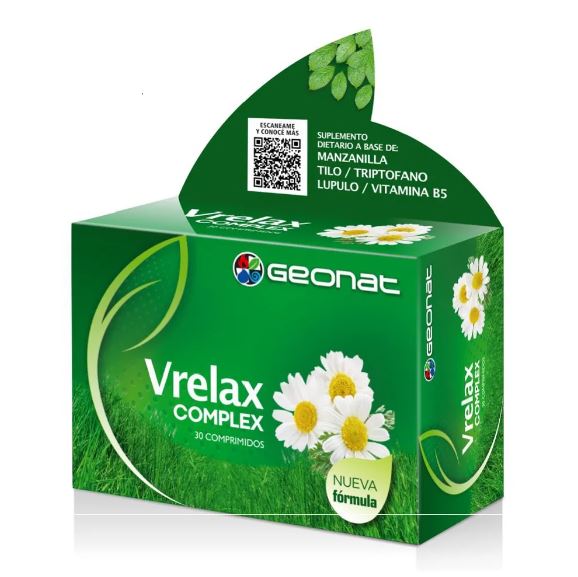 VRELAX COMPLEX 30 comprimidos, fórmula herbal para aliviar estrés y favorecer relajación.