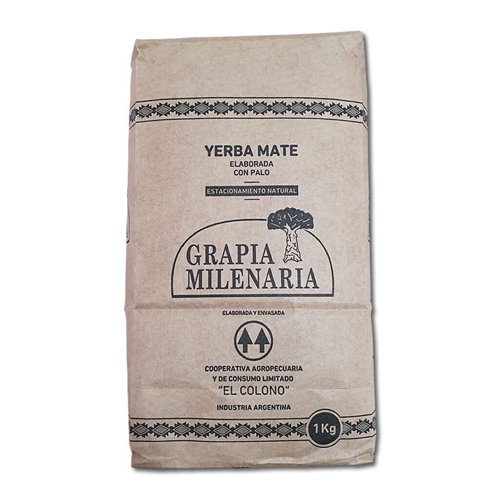 YERBA MATE GRAPIA MILENARIA 1 kg, hoja seleccionada, sabor intenso y tradición milenaria.